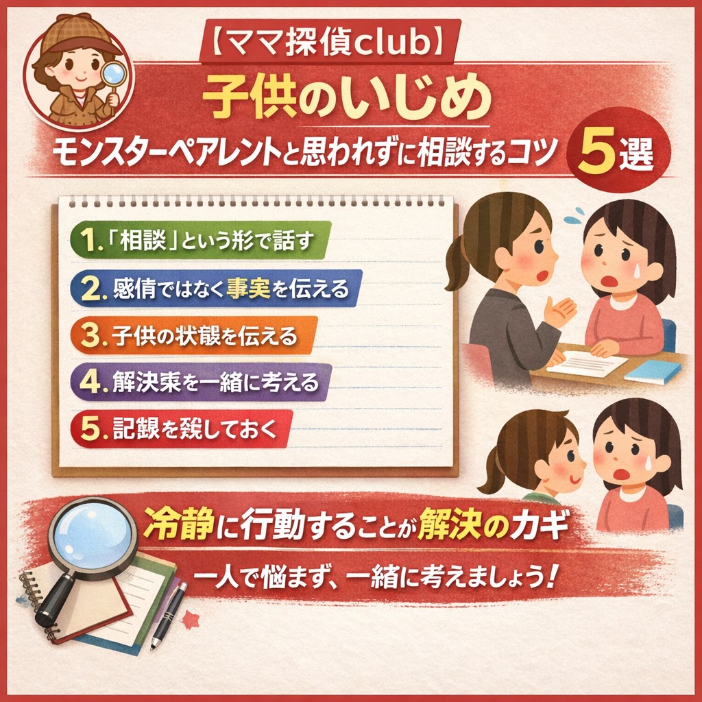 🔵【ママ探偵club】子供のいじめ|モンスターペアレントと思われずに相談するコツ…5選