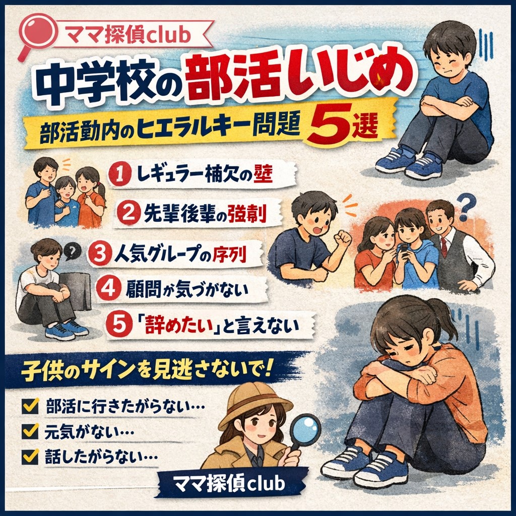 🔵【ママ探偵club】子供のいじめ|中学校の部活動内のヒエラルキー問題…5選