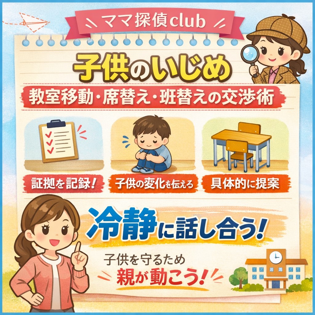 🔵【ママ探偵club】子供のいじめ|教室移動・席替え・班替えの交渉方法